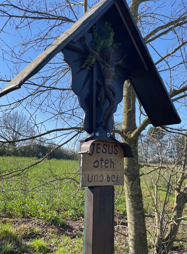 Dem einen oder anderen Spaziergänger wird aufgefallen sein, dass das Wegekreuz für ein paar Tage nicht an seinem Platz stand. Der Grund ist einfach: Über Jahre hinweg Wind und Wetter ausgesetzt, war das Holz stark in Mitleidenschaft gezogen.