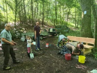 Die Arbeiten wurden trotz des schwülen Wetters zügig erledigt. Ein dickes Dankeschön geht an Alfred, Manfred, Florian, Michael und Clara.